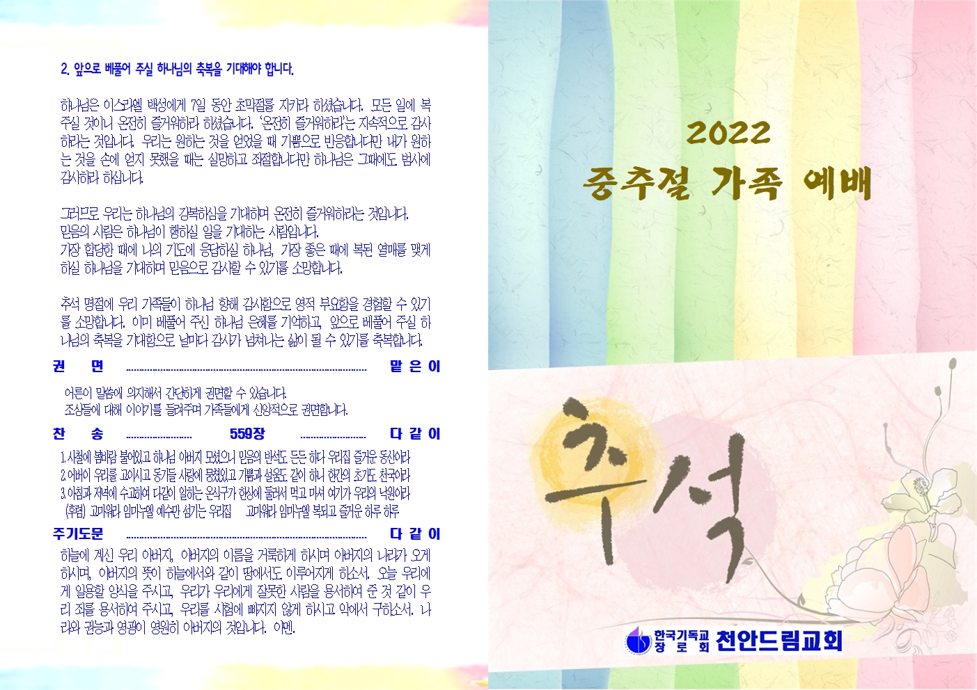 2022년 중추절 가족 예배 자료