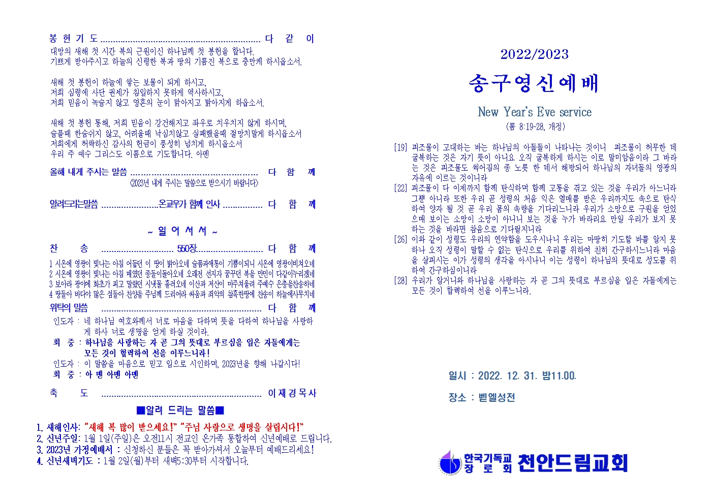 230101[성탄후1주/신년주일]예배와 공동관심사의 나눔
