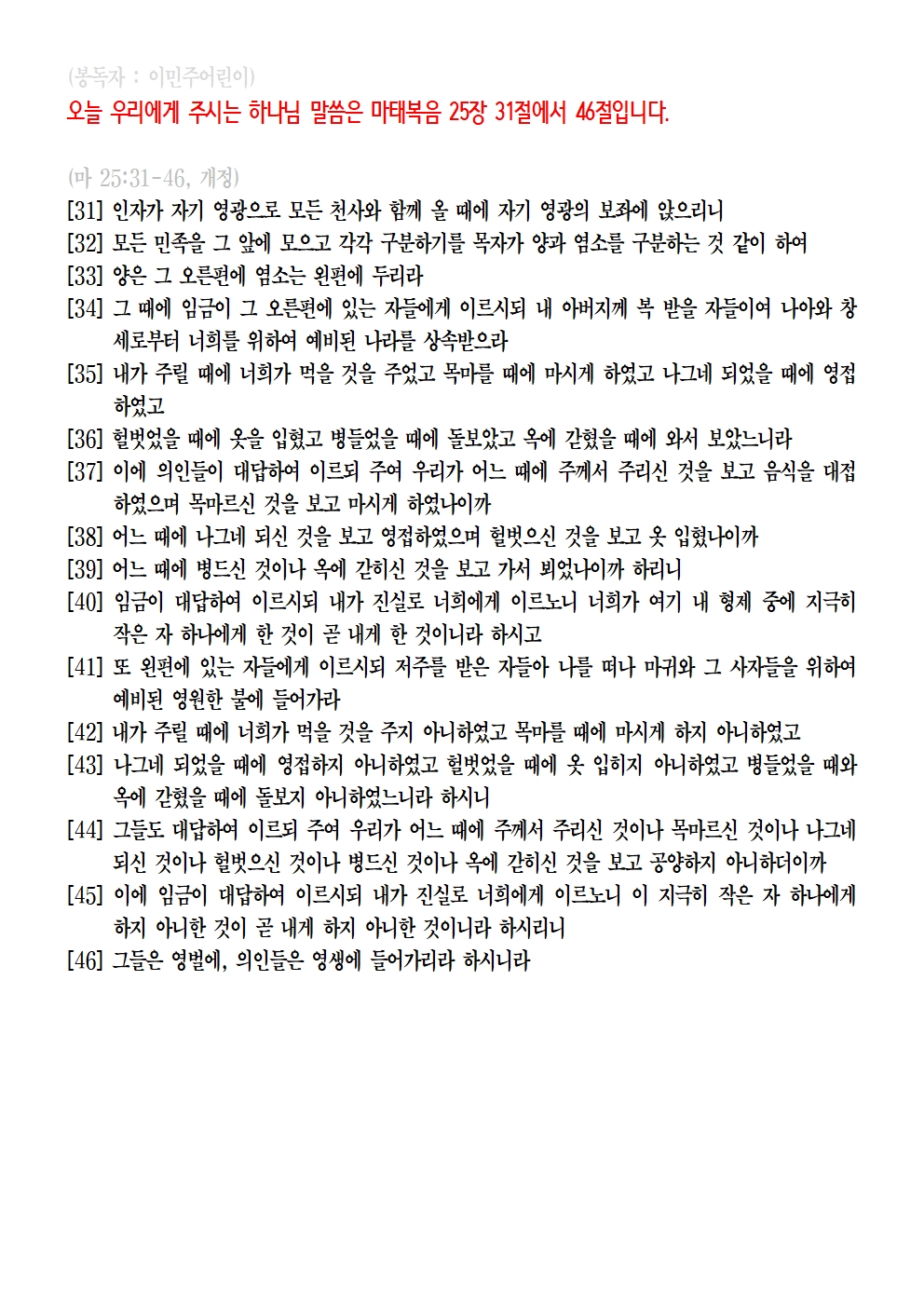 250720[성령강림후6주]예배와 공동관심사의 나눔