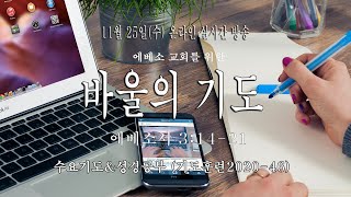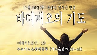 201230 수요기도&성경공부 live | 베드로의 기도 예배양육팀2020.12.28 201223 수요집회 2020.12.23 201216 수요기도&성경공부live 바디매오의 기도 이재경목사2020.12.12 201209 수요기도&성경공부live 귀신들린 딸을 위한 여인의 기도 이재경목사2020.12.7 201202 수요기도&성경공부 Live | 빌립보교회를 위한 바울의 중보기도 이재경목사2020.11.26 201125 수요기도&성경공부 Live | 에베소교회를 위한 바울의 중보기도 이재경목사2020.11.19 201118 수요기도&성경공부 Live | 바울의 기도 예배양육팀2020.11.5 201111 수요기도&성경공부 Live | 욥의 기도 정보미디어팀2020.11.2 201104 수요기도&성경공부 Live | 에스라의 금식 기도 예배양육팀2020.10.29 201028 수요기도&성경공부 Live | 아모스의 기도 이재경목사2020.10.25 더보기