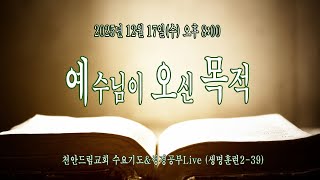 251217 예수님이 오신 목적 | 눅 4:16-19 이재경목사2025.12.12 251210 | 수요기도&성경공부38 | 새 생명의 길, 예수2 이재경목사2025.12.6 251203 | 수요기도&성경공부37 | 새 생명의 길, 예수 이재경목사2025.11.28 251126 하나가 되게 하옵소서 이재경목사2025.11.20 251119 | 그 방법밖에 없었을까? | 삼상 1:1-6 이재경목사2025.11.8 251105 |제33장 하늘 병법을 아는가? | 수10:40-43 이재경목사2025.10.31 251029 | 수요기도&성경공부 |기적은 기적 처럼 오지 않는다 | 삼상 1:20-28 이재경목사2025.10.24 251022 사랑과 헌신의 교회 | 벧전2:1-10 이재경목사2025.10.17 251001수요기도&성경공부 | 복음의 진정성이 있는 교회 공동체 | 롬12:1-13 이재경목사2025.9.25 250917 수요기도&성경공부 | 삶으로 예배하는 공동체 | 롬12:1-13 이재경목사2025.9.13 더보기